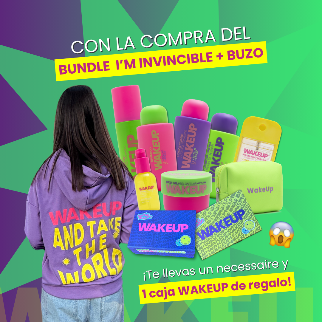 BUNDLE I’M INVINCIBLE + BUZO = CAJA WAKEUP Y NECESSAIRE DE REGALO!